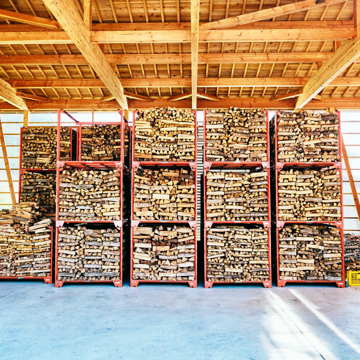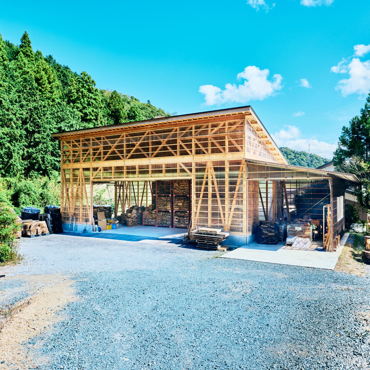 薪は天日干しで約1年乾燥させ、その後薪小屋で更に乾燥を行っています。
